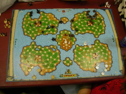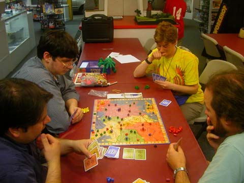 Open gaming at Danger Planet. Played 6-player Great Brain Robbery, 5-player Lord of the Rings (with Pilar, Tom, Rich), 5-player Evo (with Pilar, Tom, Rich, Jimmy.)
