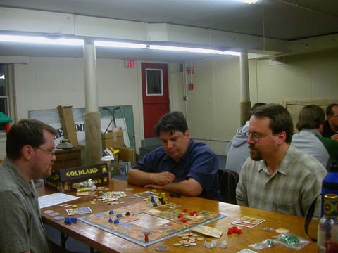 Rob, Tony, Ian and I played a game of Java This games works well with four players as it does with two. Every turn is very engaging, thinking about all the possible moves, and the juicy ones you have to give up as well. Even during the downtime, you can spend time thinking about the moves. It's a beautiful board with many possibilities, so it's a pleasure to examine the board while thinking about the next move.
