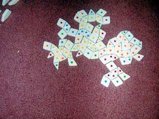 Nancy and I went to dinner and she told me she liked The Very Clever Tile Game most of all the games I introduced her to. (Go being her most favorite. Though, I enjoy the game she designed which is based on the Penrose pattern.) Well, I happen to carry it around because it's one of the few fun games that fits in my jacket pocket, so I carry it around for just such a gaming fix! :-)