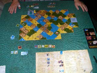 I was very excited to get this game. From its description, it's much like the kind of game I was hoping to play when I first got into this hobby -- a strategic exploration game. Playing the game didn't disappoint me. Even Nancy, who was on the verge of petering out so late at night, found the game engaging enough to push herself to play longer.